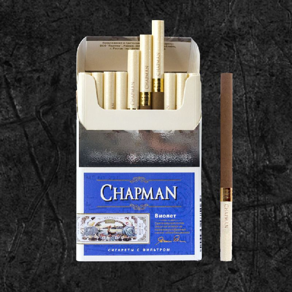 - Стильная упаковка: дизайн пачки сигарет Chapman выполнен в элегантной и минималистичной манере, идеально дополняющей образ современного человека.